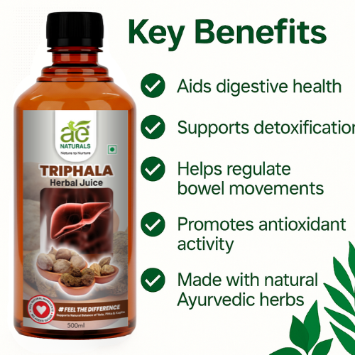 Experience the ancient wisdom of Ayurveda with AE Naturals Triphala Herbal Juice and embrace a healthier lifestyle naturally!